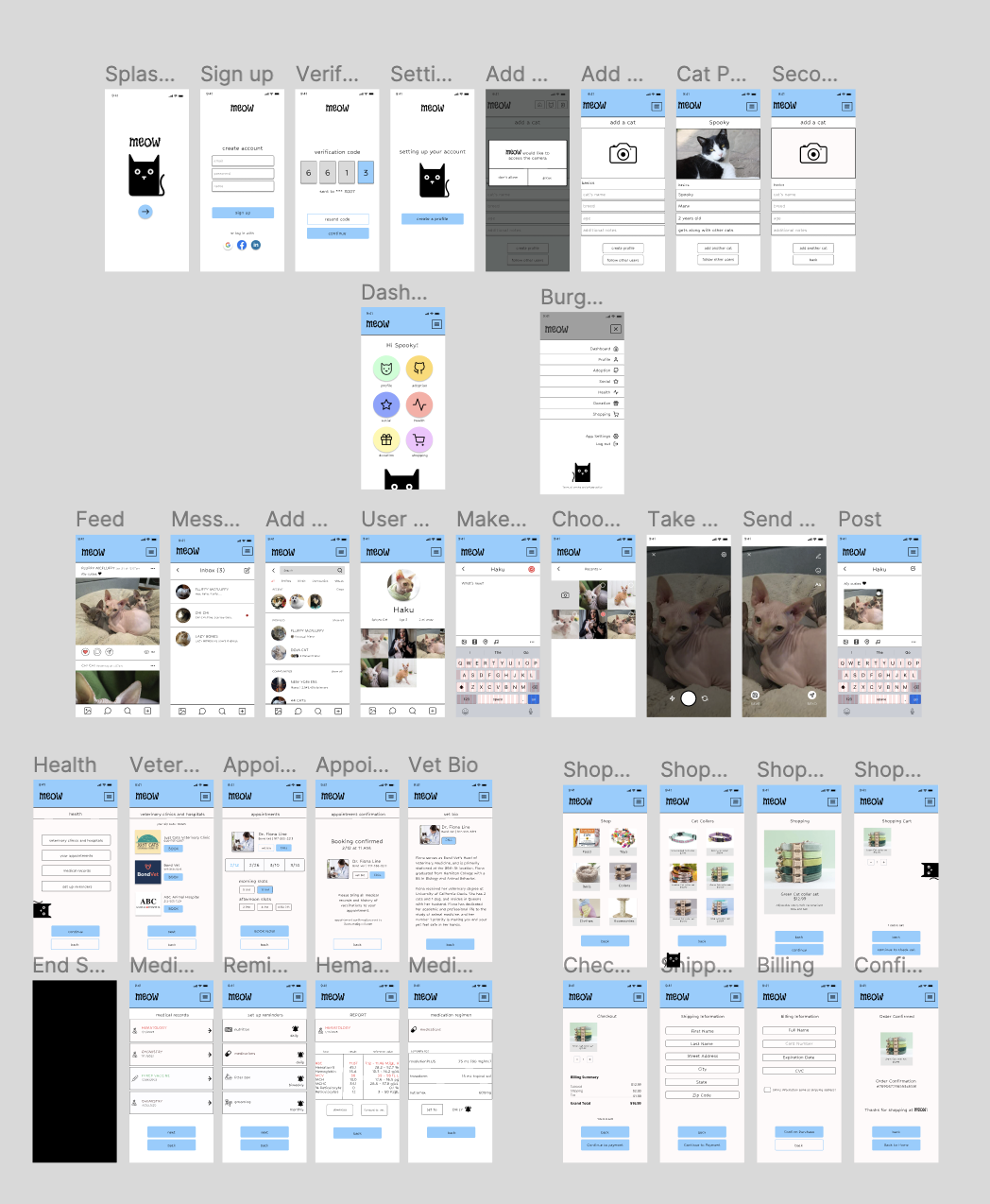 Design an app that seamlessly integrates community, medical resources, and shopping and is tailored for cat owners.
